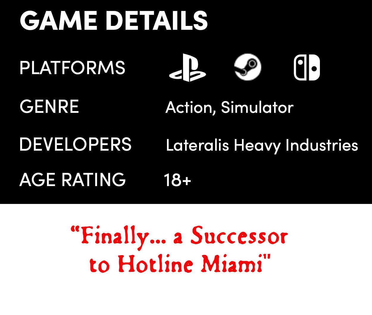 Soundtrack: Fully immerse yourself into the brutal noir-esque murder ballet through the gritty pulse pumping soundtrack composed by the developer himself.