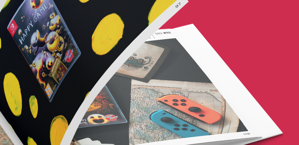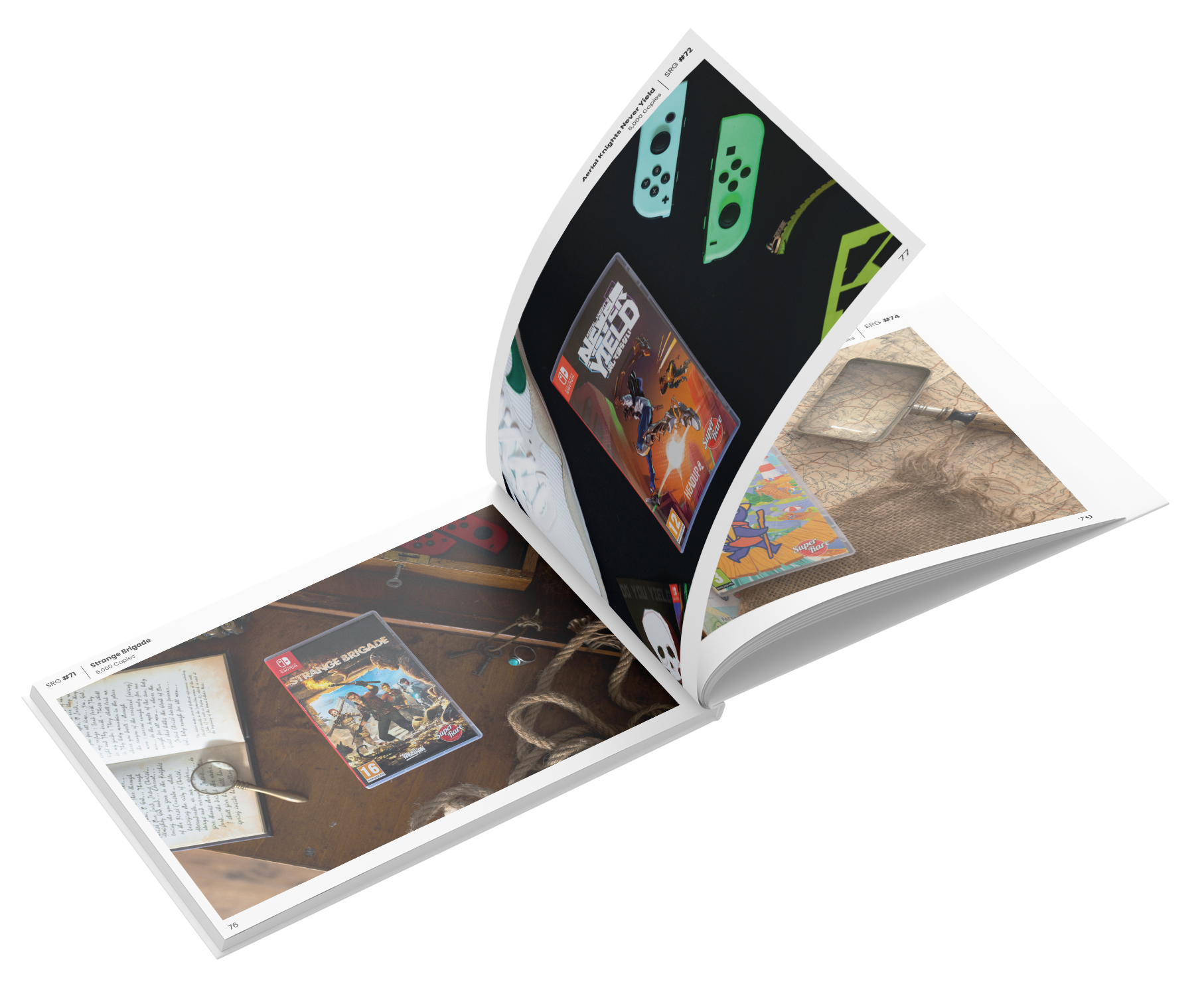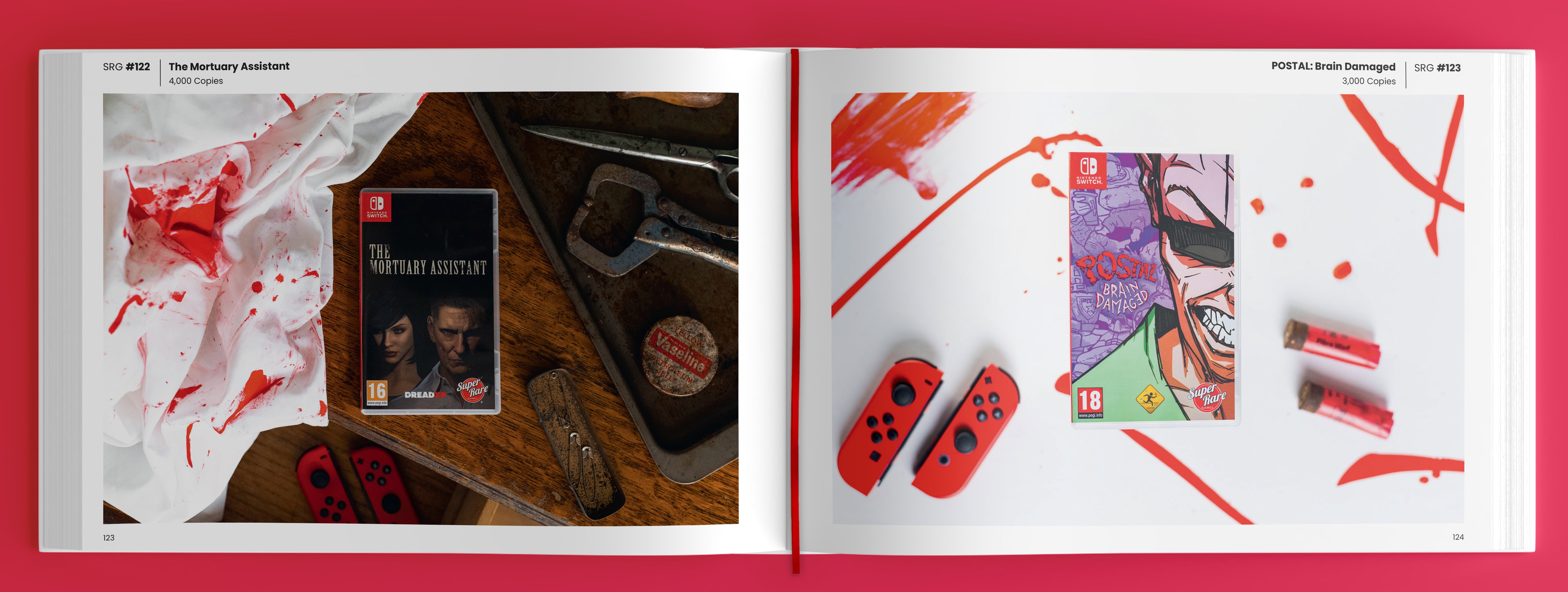 176 full-colour pages. 285mm × 210mm x 17.5mm. 150gsm silk art print. Solid Red, Leather-feel Hardback cover with gold foil SRG Logo & book name on spine. Premium Antiscuff Dust Jacket featuring bespoke commissioned artwork featuring some of the characters from the included games. Striking Red Bookmark Ribbon.