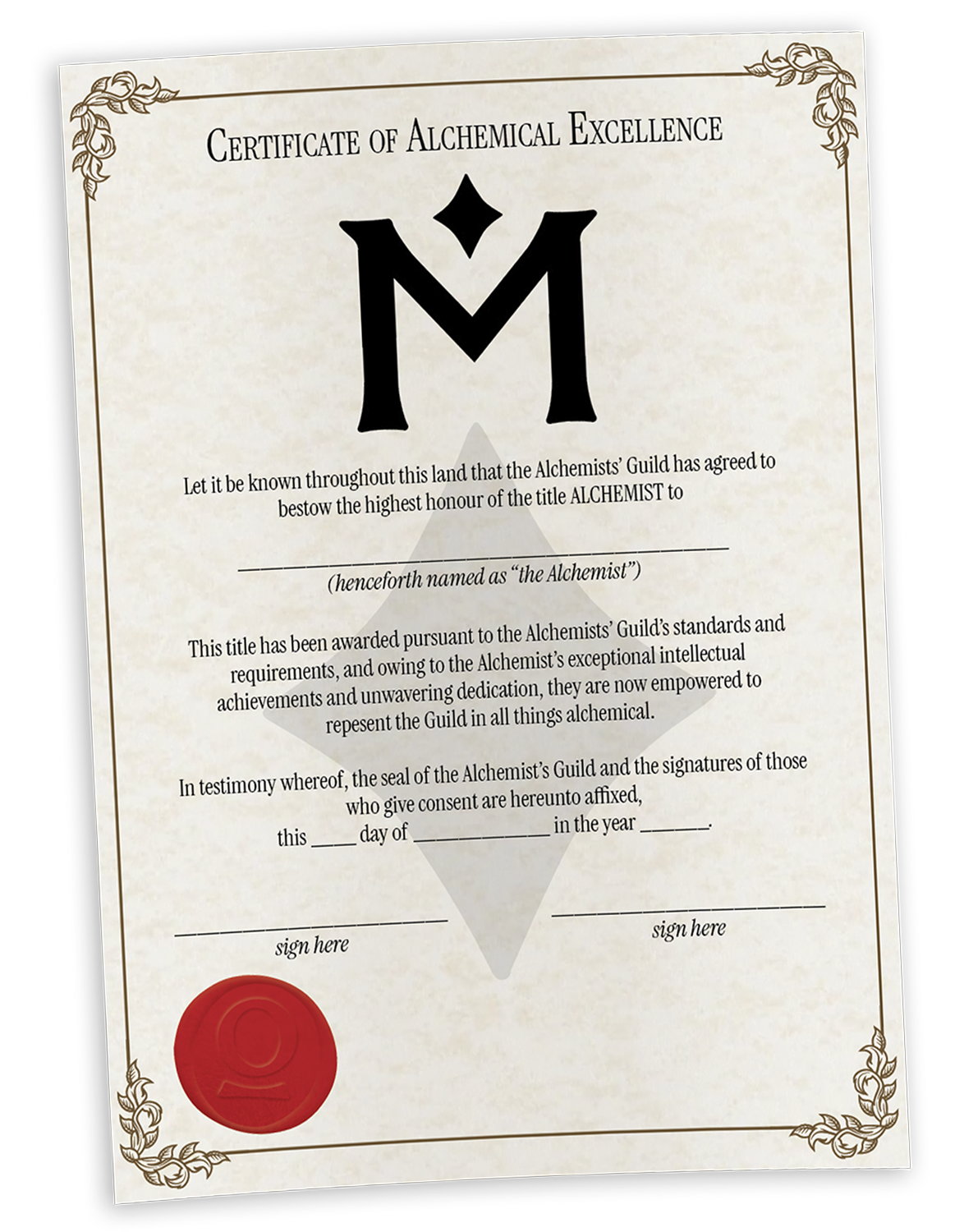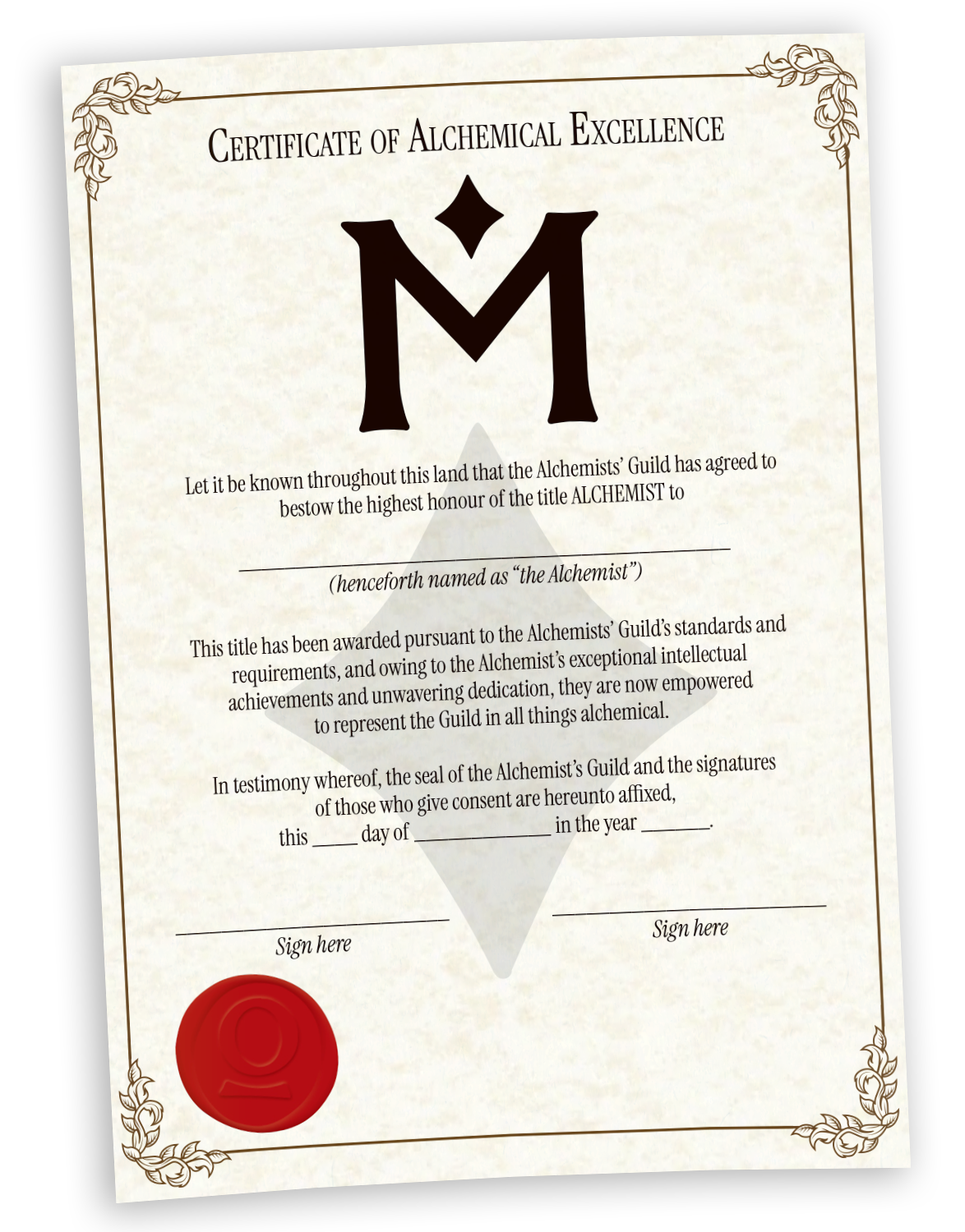 Straight from the Academy of Alchemy, this official Certificate of Excellence marks your mastery in potion brewing and Spirit taming - an honour only the most dedicated islanders achieve!