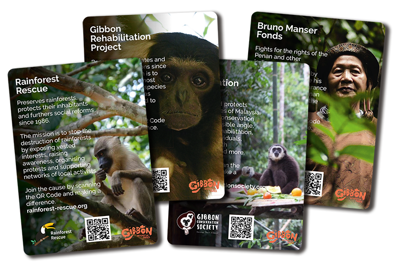 🌴 To support the 4 charities which provided invaluable aid to the making of Gibbon: Beyond the Trees, you'll receive 1 of 4 exclusive NGO cards. Each with information on the specific charity and how they make a difference in the world!